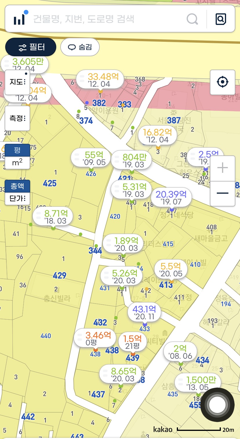 아래 동작구 본동내 부동산 실거래내역을 보면 한강지주택 사업지내에서 19~20년중 지속적으로 거래가 이루어져왔던 점을 확인할 수 있습니다. 거래가 발생한 지역은 정확히 한강 지역주택조합 사업지이며, 실제로 거래내역의 등기를 살펴보면 대부분 매수주체는 한강지역주택조합이였습니다. 최근 한강지역주택 조합이 조합설립인가를 받았는데, 조합설립인가 이후 사업계획 승이을 위해 토지매입을 진행해온 것이라고 추측이 됩니다.